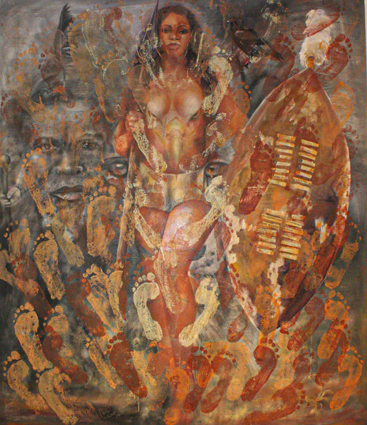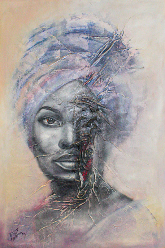 Keith Zenda is a contemporary artist from Zimbabwe whose work combines spirituality, ancestral wisdom, and human resilience. His style blends symbolic realism and abstract expressionism, using bold colors, textured layers, and African materials such as fabrics and beads. Deeply rooted in Shona culture, his works explore themes such as ancestral guidance, totems, feminine strength, and collective identity. With the Zendaism he coined, Zenda created an artistic movement that focuses on memory, self-discovery, and cultural dignity. His journey began with homemade brushes and recycled materials. His breakthrough came with Freedom Revisited —a painting that transformed rejection into creative strength. Today, his works are exhibited worldwide, including in Berlin, Zurich, and Hong Kong. A work on Great Zimbabwe hangs as a diplomatic gift in the office of the Chinese president. Through the Zenda Art Centre in Gweru, he supports young talent and strengthens a sense of community and cultural awareness. Keith Zenda lives in Harare and Gweru and is committed to international art exchange as co-founder of the Swiss-Zim Heritage Gallery.