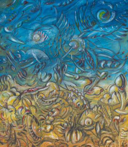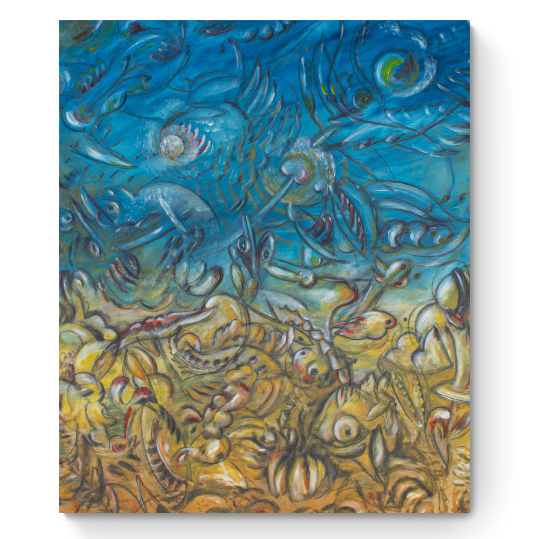 Karl H. Dennig, born in Wilferdingen in 1939, is an artist who plays with elegant colors and complex symbols. His works combine plants, animals and mystical shapes to create dreamy compositions. In addition to painting, he also designs furniture and carpets that show his creative versatility. Dennig lives in Berlin and has exhibited internationally, from London to Zurich.