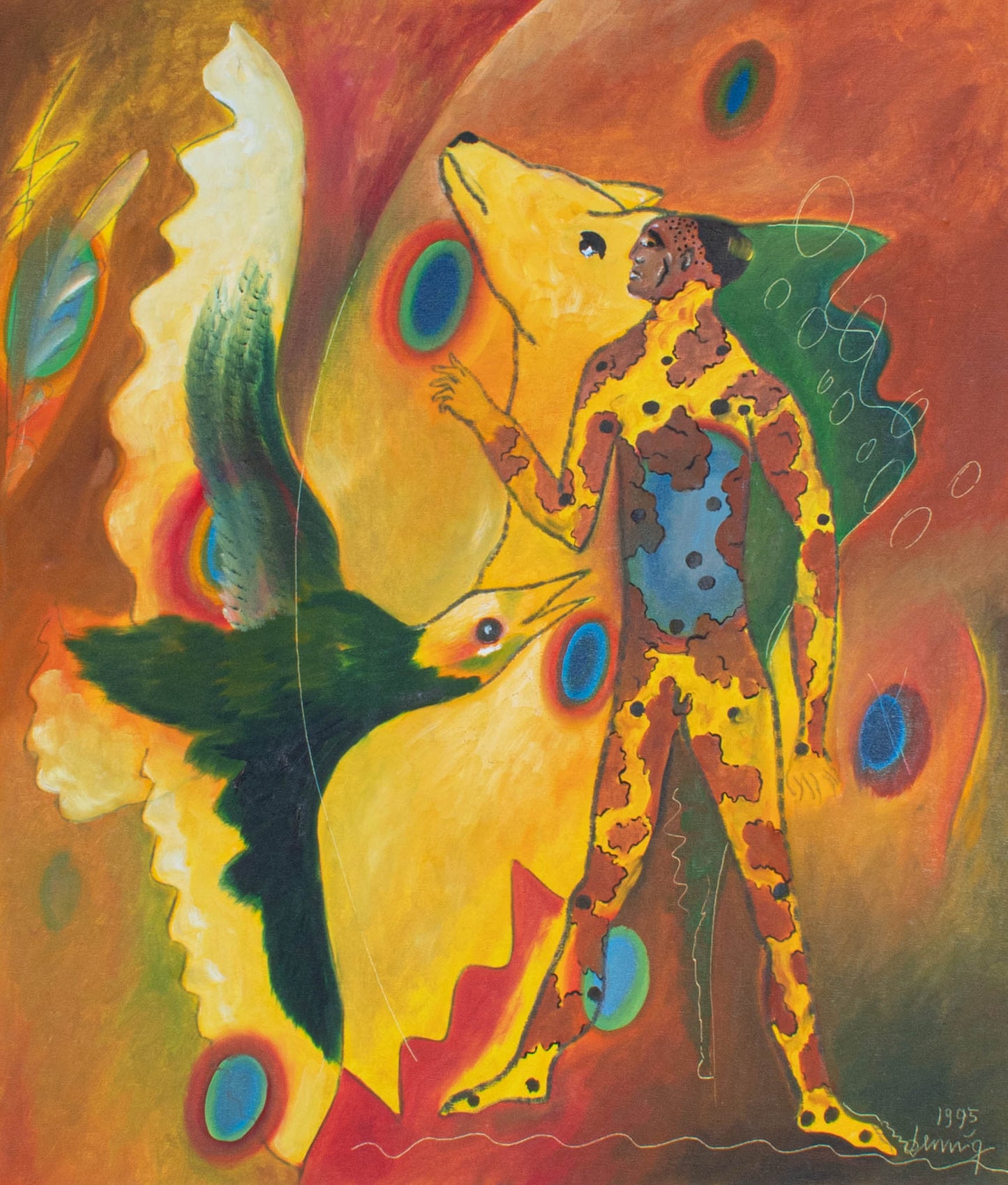 Karl H. Dennig, born in Wilferdingen in 1939, is an artist who plays with elegant colors and complex symbols. His works combine plants, animals and mystical shapes to create dreamy compositions. In addition to painting, he also designs furniture and carpets that show his creative versatility. Dennig lives in Berlin and has exhibited internationally, from London to Zurich.