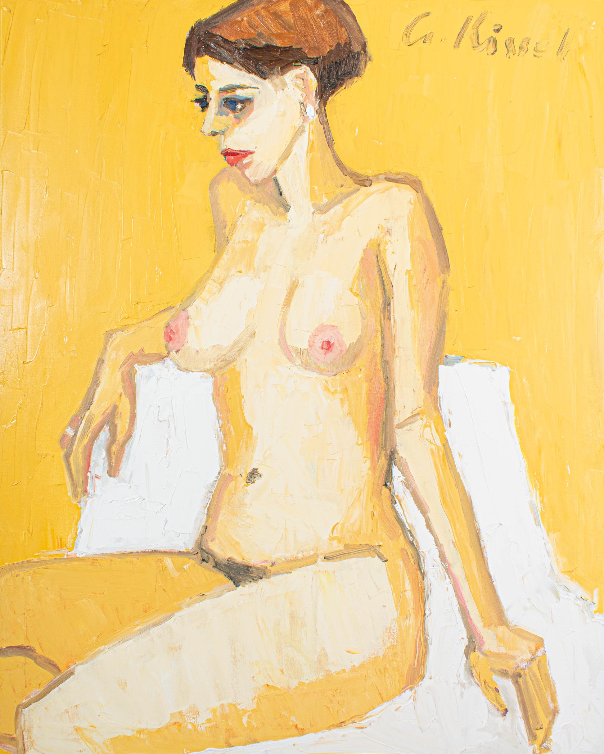 Gernot Kissel, born in Worms in 1939, discovered his passion for painting at the age of 18. His works, characterized by strong contours and bright colors, especially his beloved red, combine sensual representation with modern reduction. Kissel painted with intense expression, often using his thumb to breathe life into the color. His wife Sonja was not only his most important model, but also his harshest critic. He lived and worked in the Palatinate until his death in 2008.