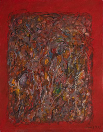 Karl H. Dennig, born in Wilferdingen in 1939, is an artist who plays with elegant colors and complex symbols. His works combine plants, animals and mystical shapes to create dreamy compositions. In addition to painting, he also designs furniture and carpets that show his creative versatility. Dennig lives in Berlin and has exhibited internationally, from London to Zurich.