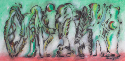Karl H. Dennig, born in Wilferdingen in 1939, is an artist who plays with elegant colors and complex symbols. His works combine plants, animals and mystical shapes to create dreamy compositions. In addition to painting, he also designs furniture and carpets that show his creative versatility. Dennig lives in Berlin and has exhibited internationally, from London to Zurich.