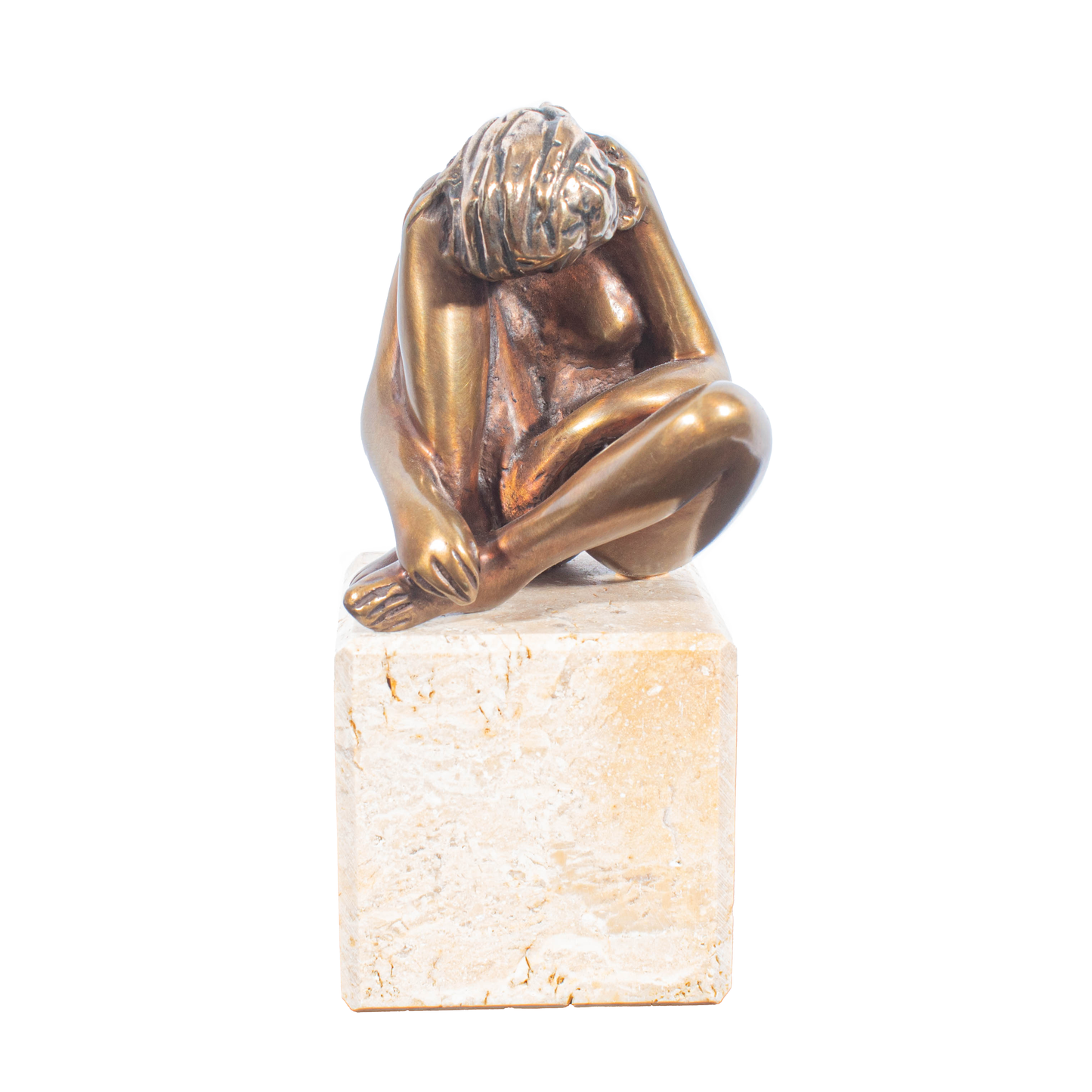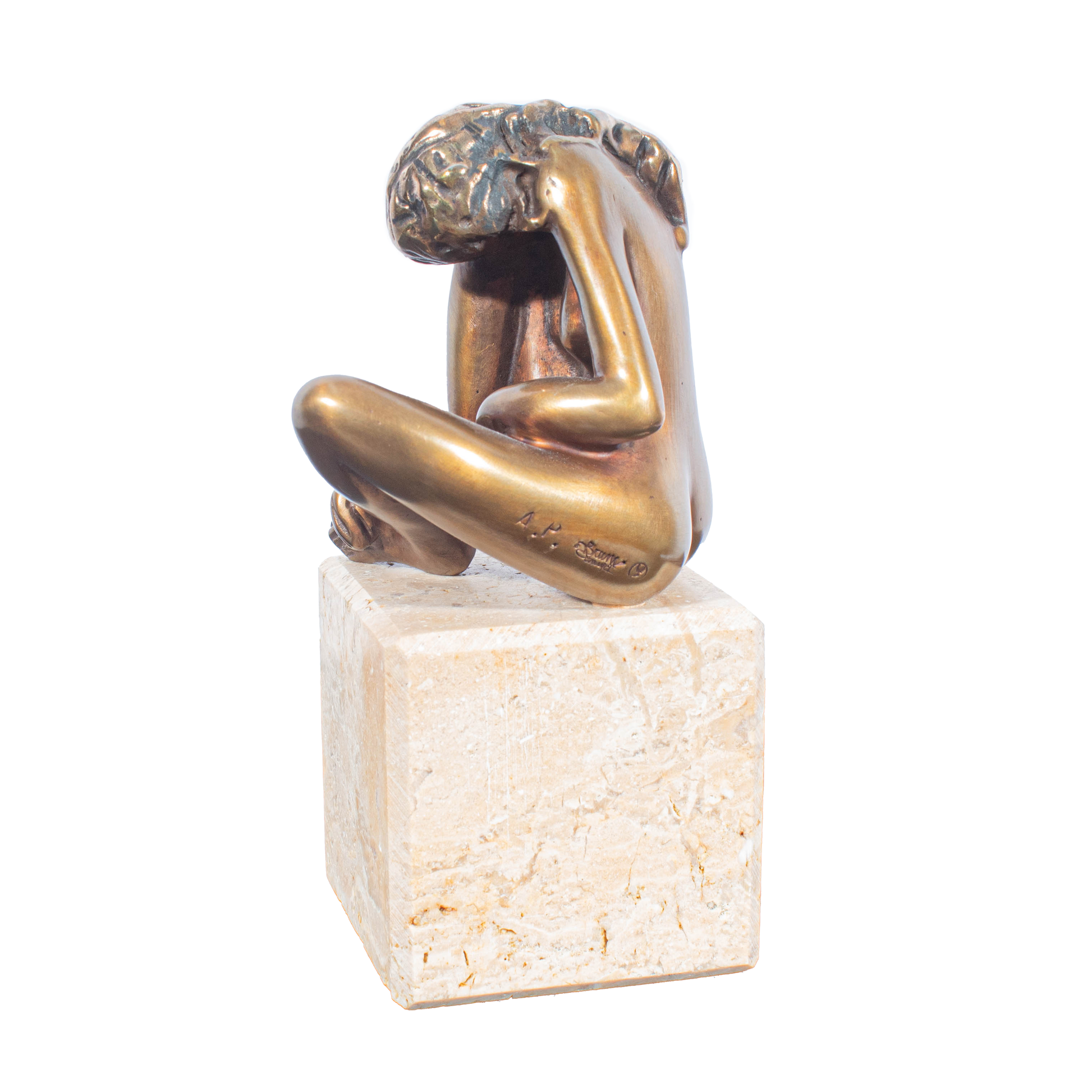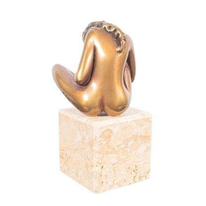 Bronze, mounted on a travertine base, height: 14 cm including base, signed