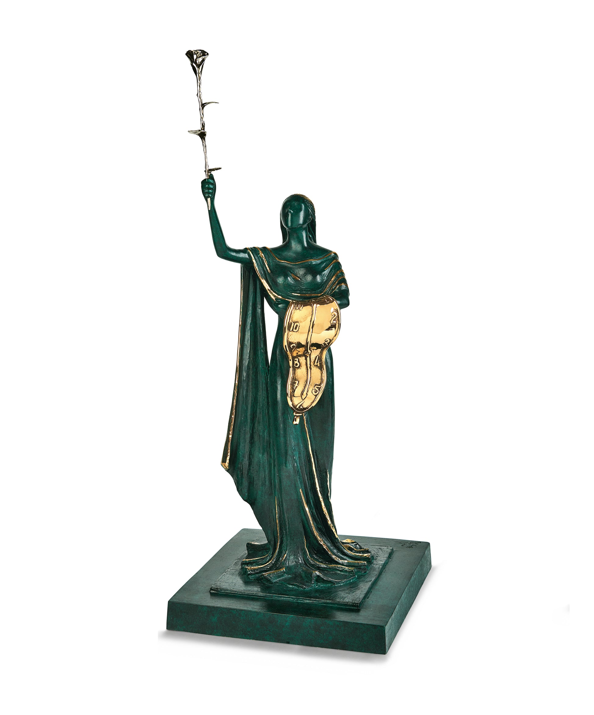In Woman of Time verbindet Dalí das Symbol der weichen Uhr mit der Anmut einer eleganten Frauenfigur. Über ihrem Arm liegt die Uhr als Sinnbild der Vergänglichkeit, in den Händen hält sie eine Rose, Zeichen von Schönheit und Harmonie. Ihr Gewand erinnert an den Liberty Style des frühen 20. Jahrhunderts, was die Skulptur zugleich zeitlos und modern erscheinen lässt.