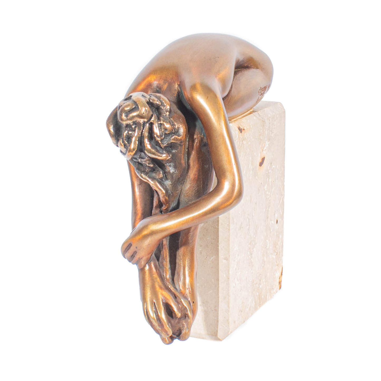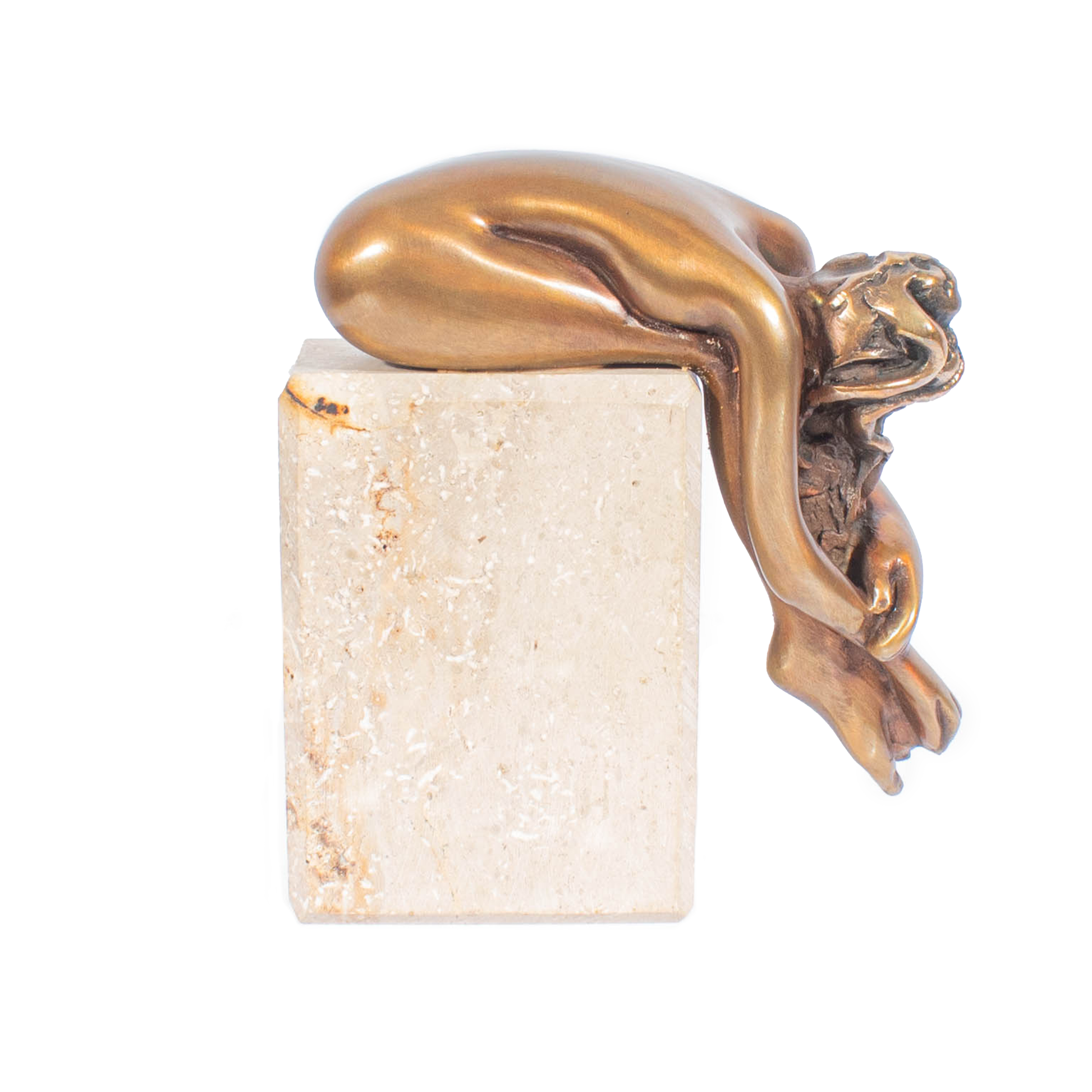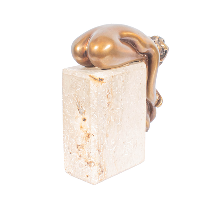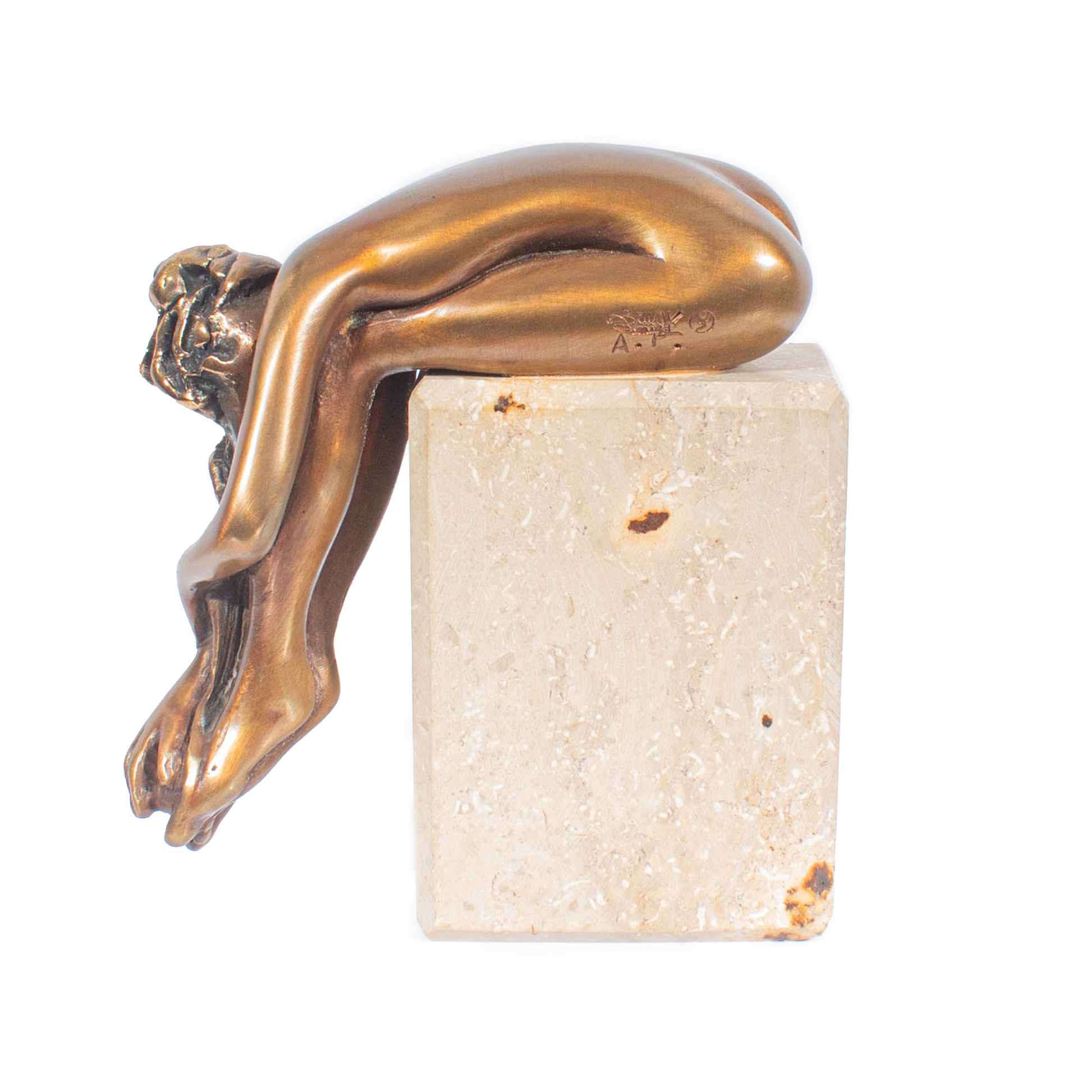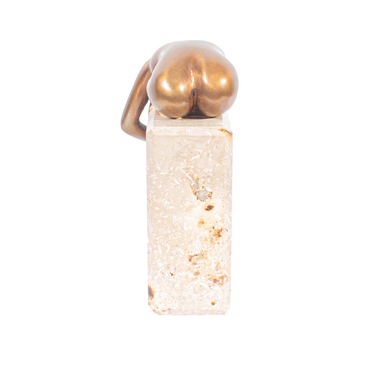 Bronze, montiert auf einem Sockel aus Travertin, Höhe: 10 cm inkl. Sockel, signiert