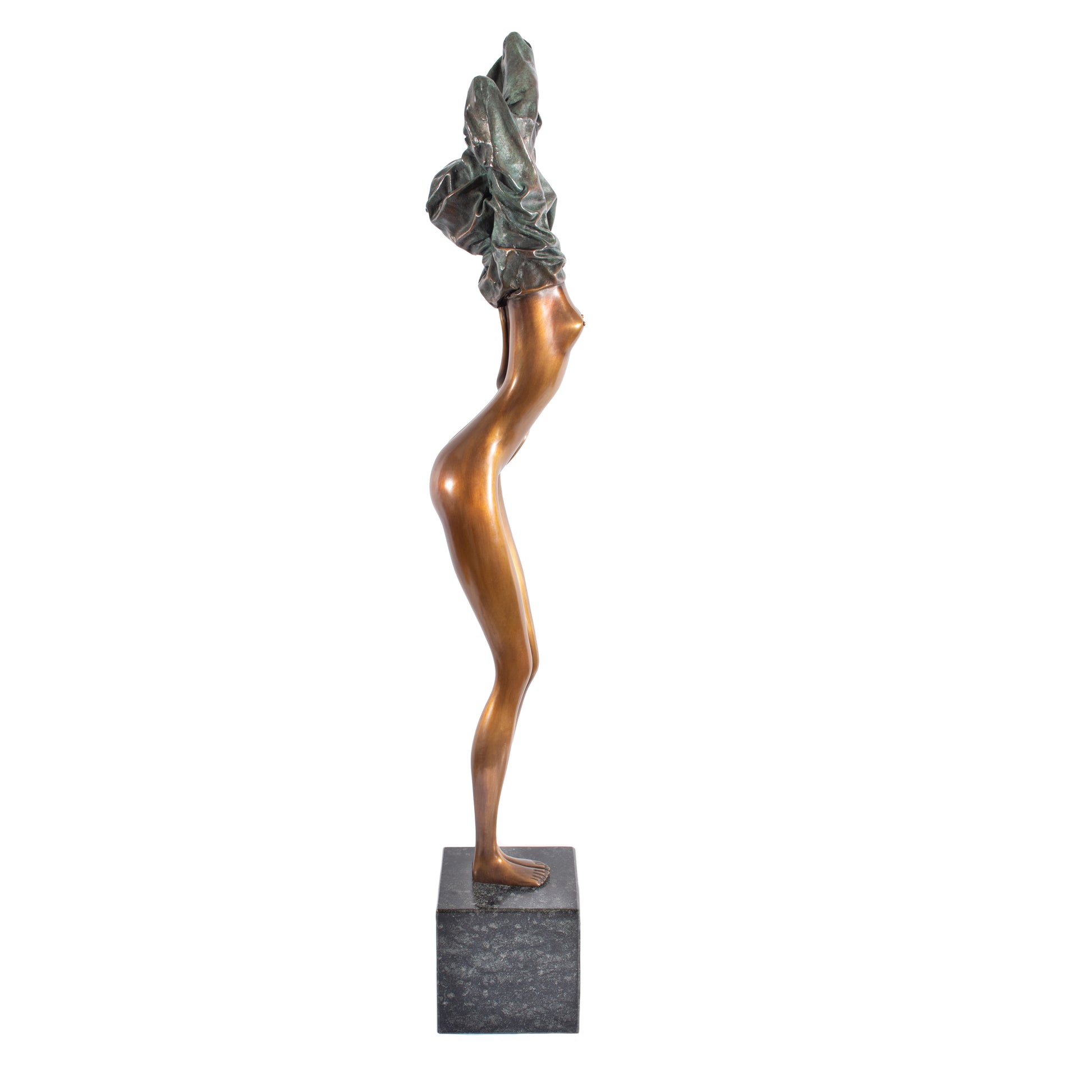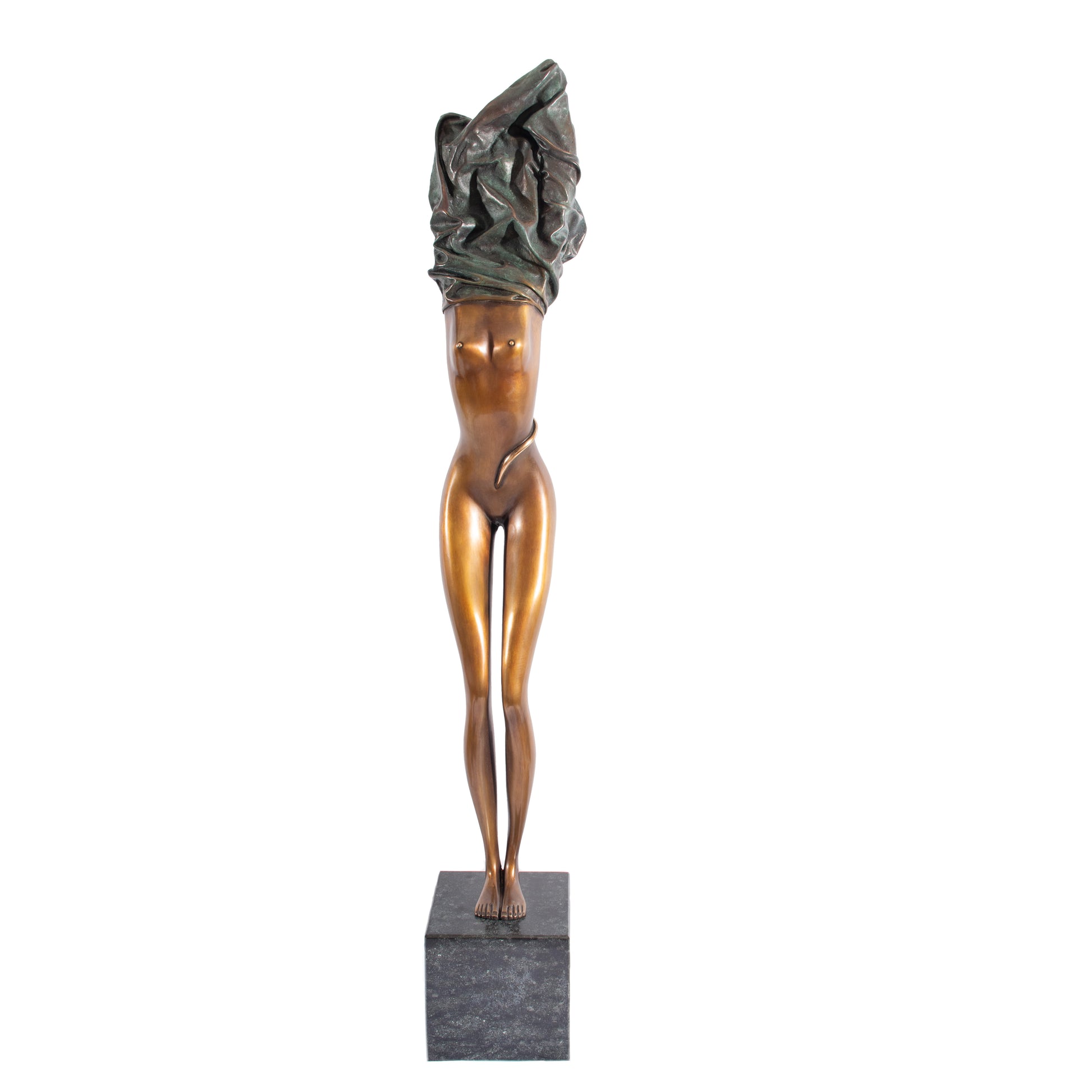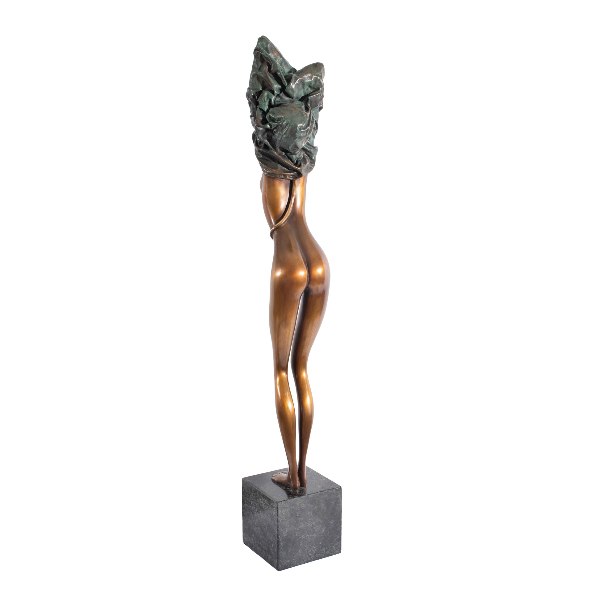 Bronze, teilweise grün patiniert, montiert auf einem Sockel aus Diabas-Naturstein, Höhe: 72 cm, signiert