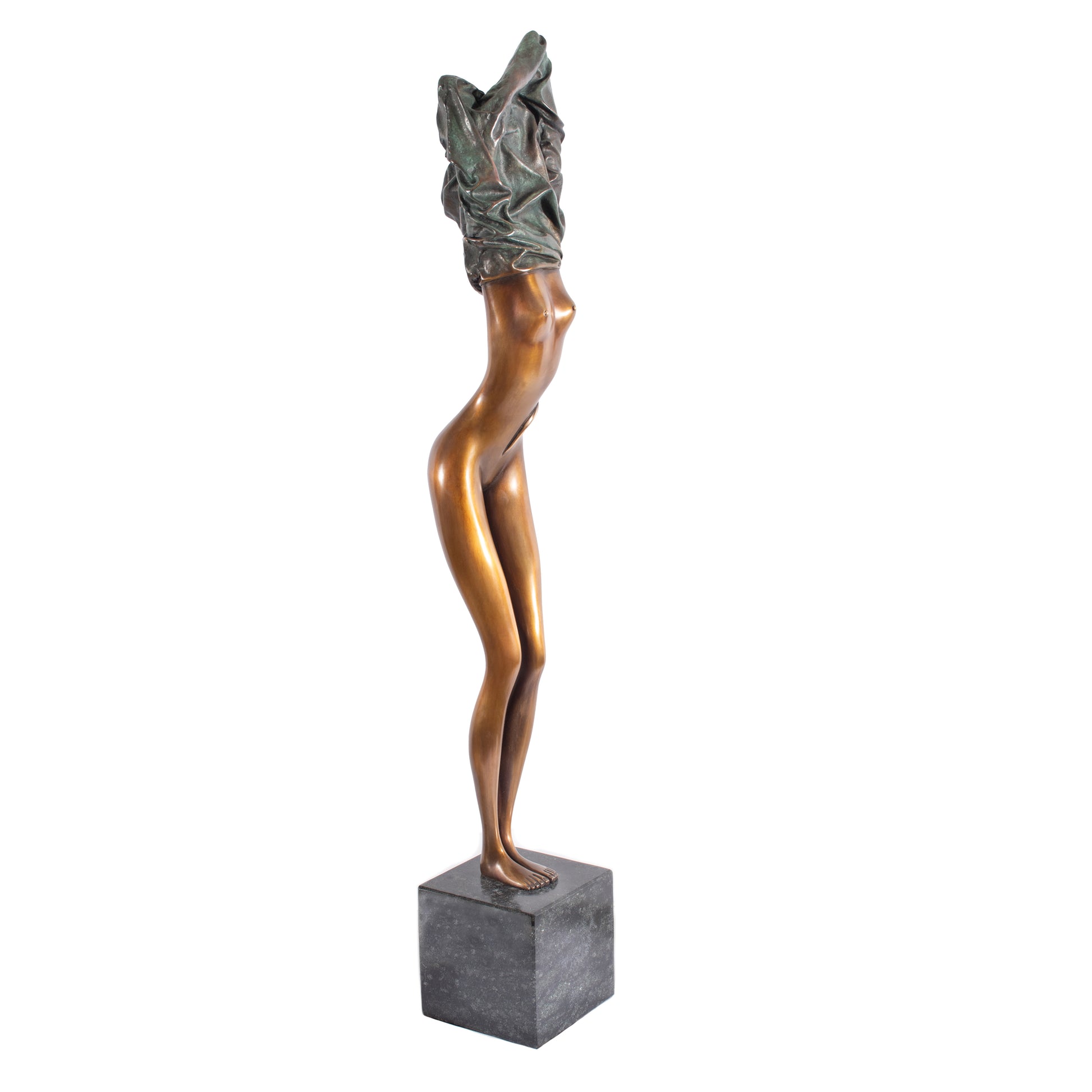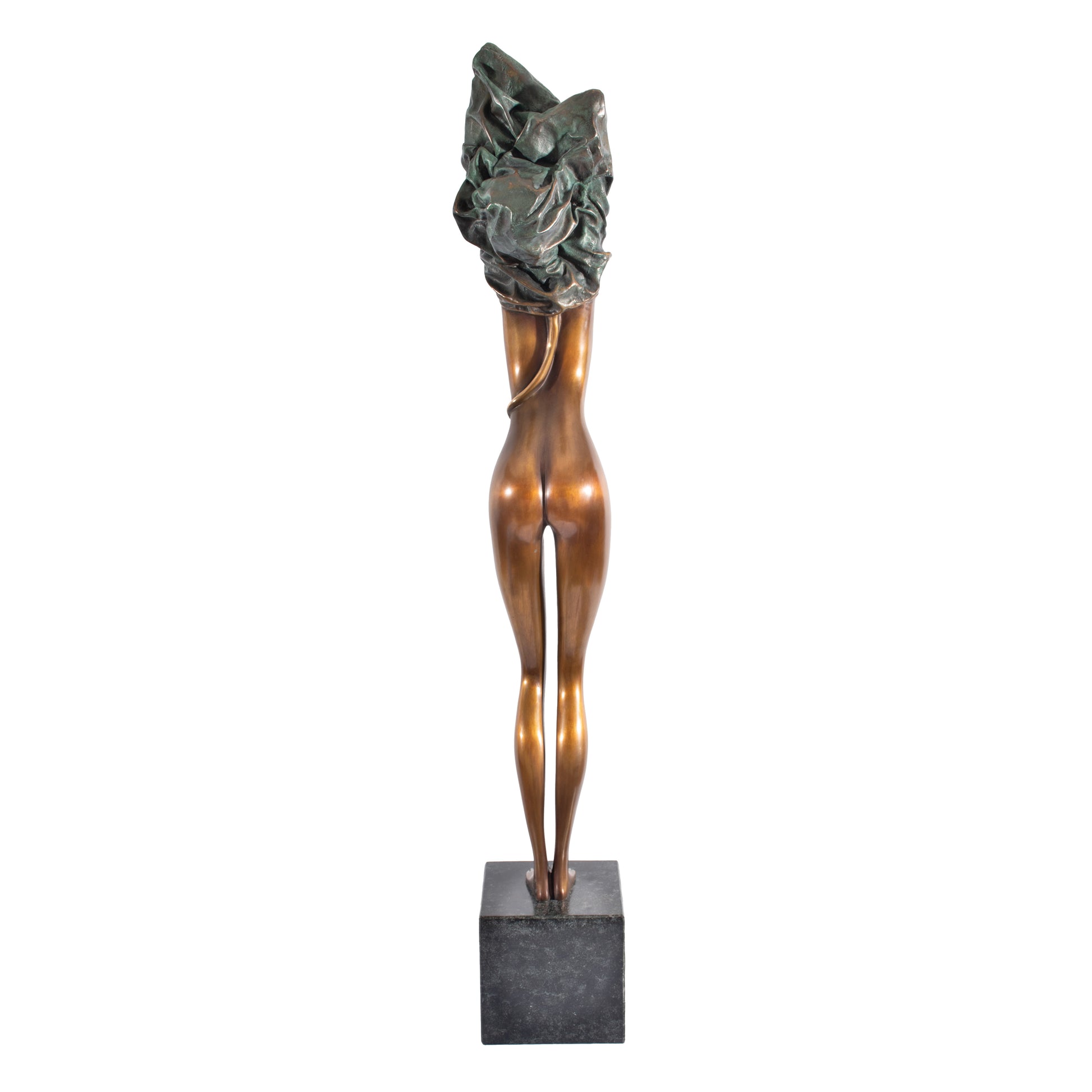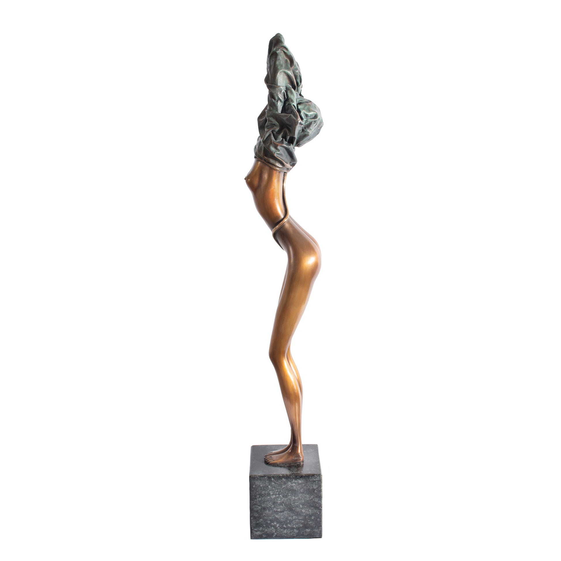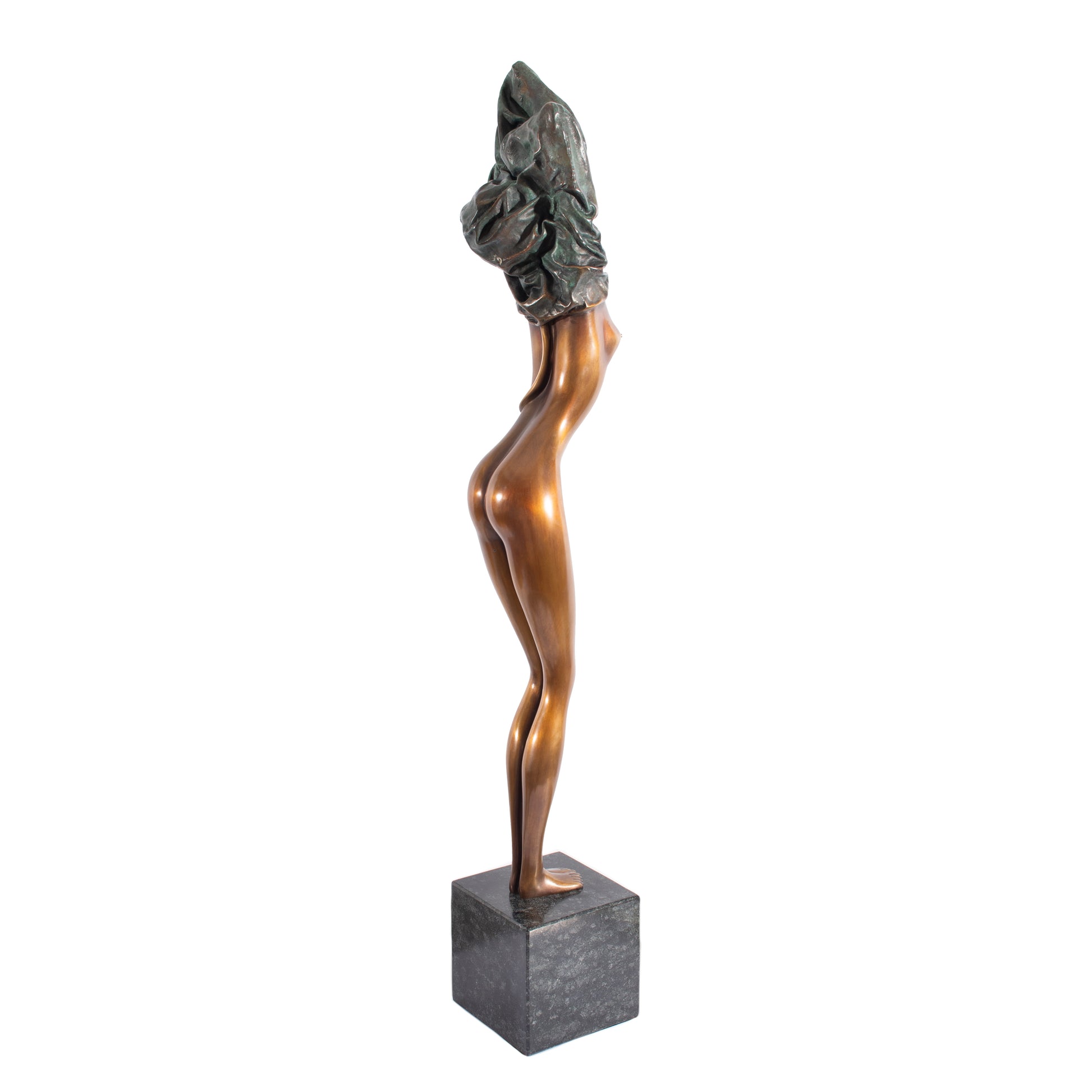 Bronze, teilweise grün patiniert, montiert auf einem Sockel aus Diabas-Naturstein, Höhe: 72 cm, signiert