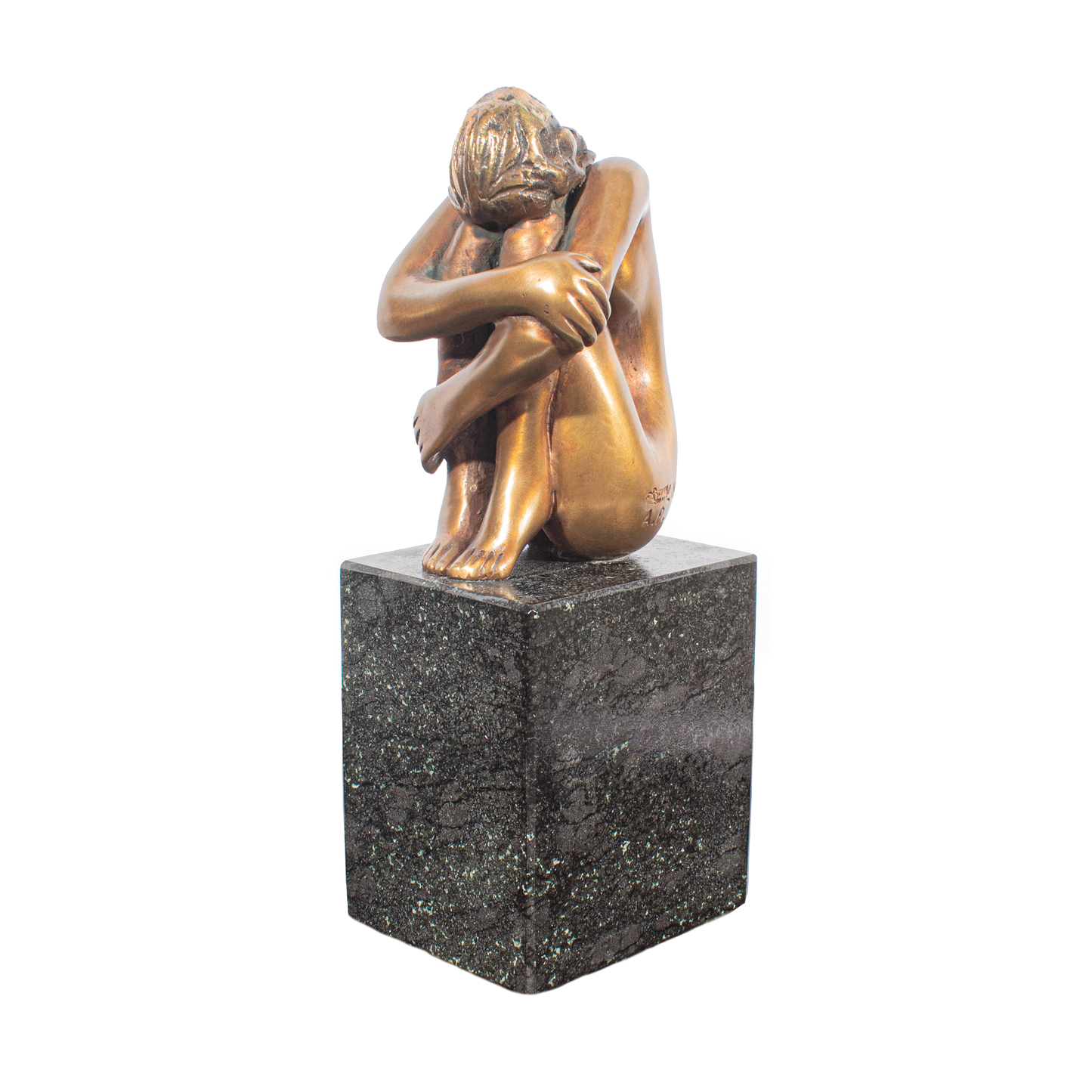 Bronze, montiert auf einem Sockel aus Diabas-Naturstein, Höhe: 16 cm inkl. Sockel, signiert