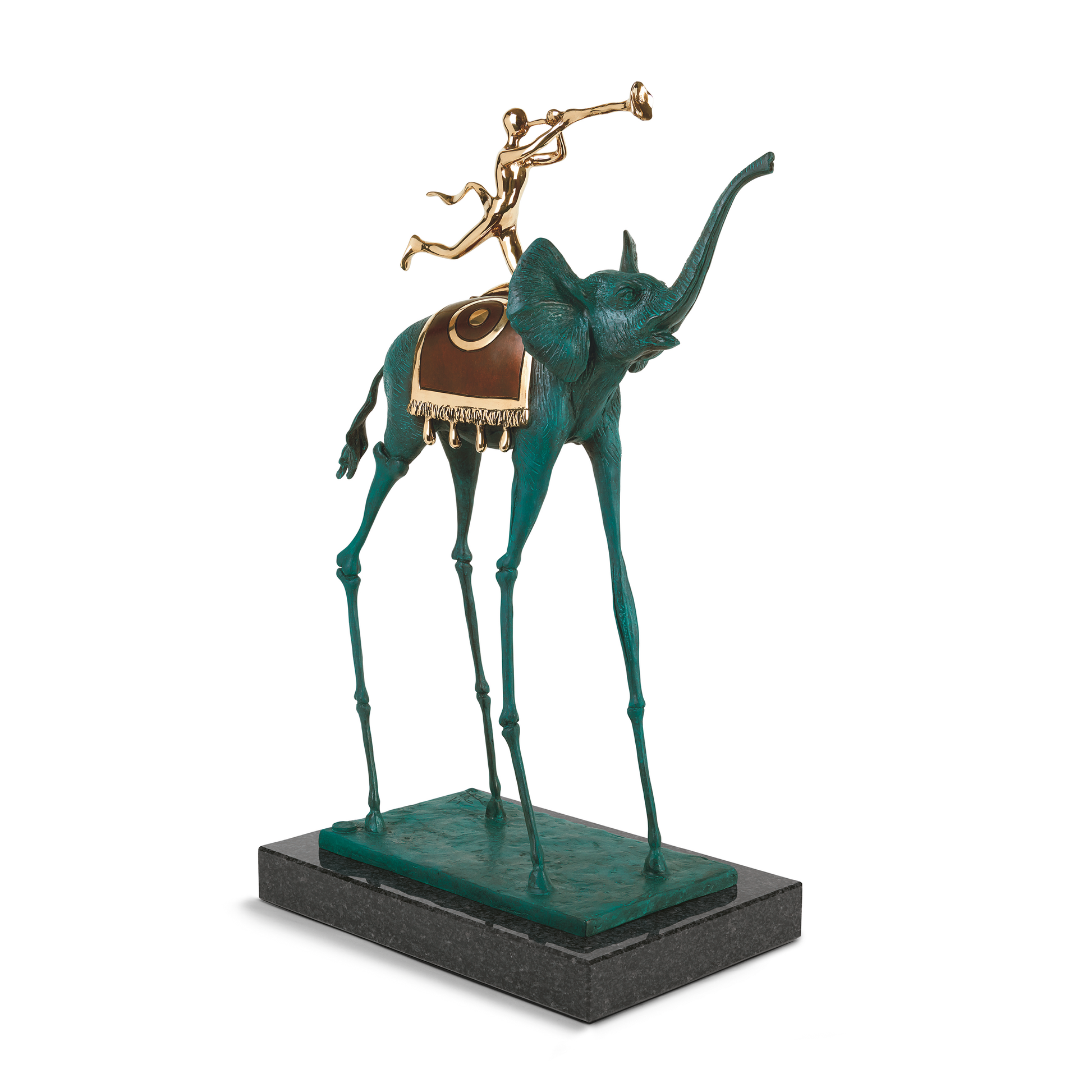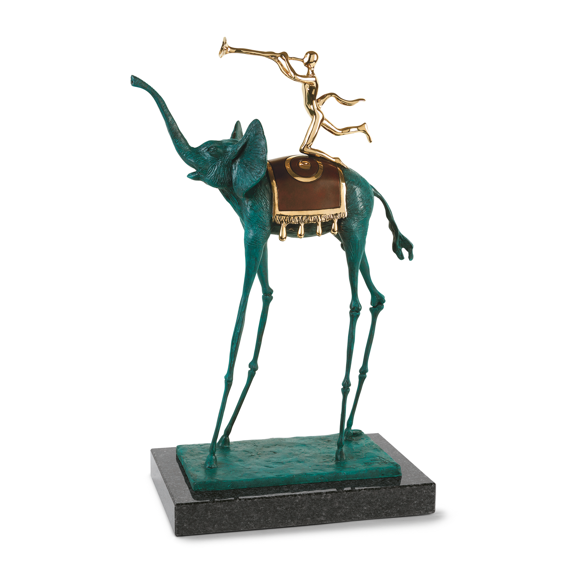 Der Elefant, für Dalí ein Symbol der Zukunft, gehört zu seinen bekanntesten Motiven. Mit dünnen, endlos langen Beinen unterläuft er die Vorstellung von Schwere und Kraft, verwandelt das Tier in ein Wesen, das die Naturgesetze scheinbar mühelos überwindet. Erstmals tauchte der Elefant 1944 in Dream Caused by the Flight of a Bee… auf und blieb ein wiederkehrendes Bild in Dalís Werk.