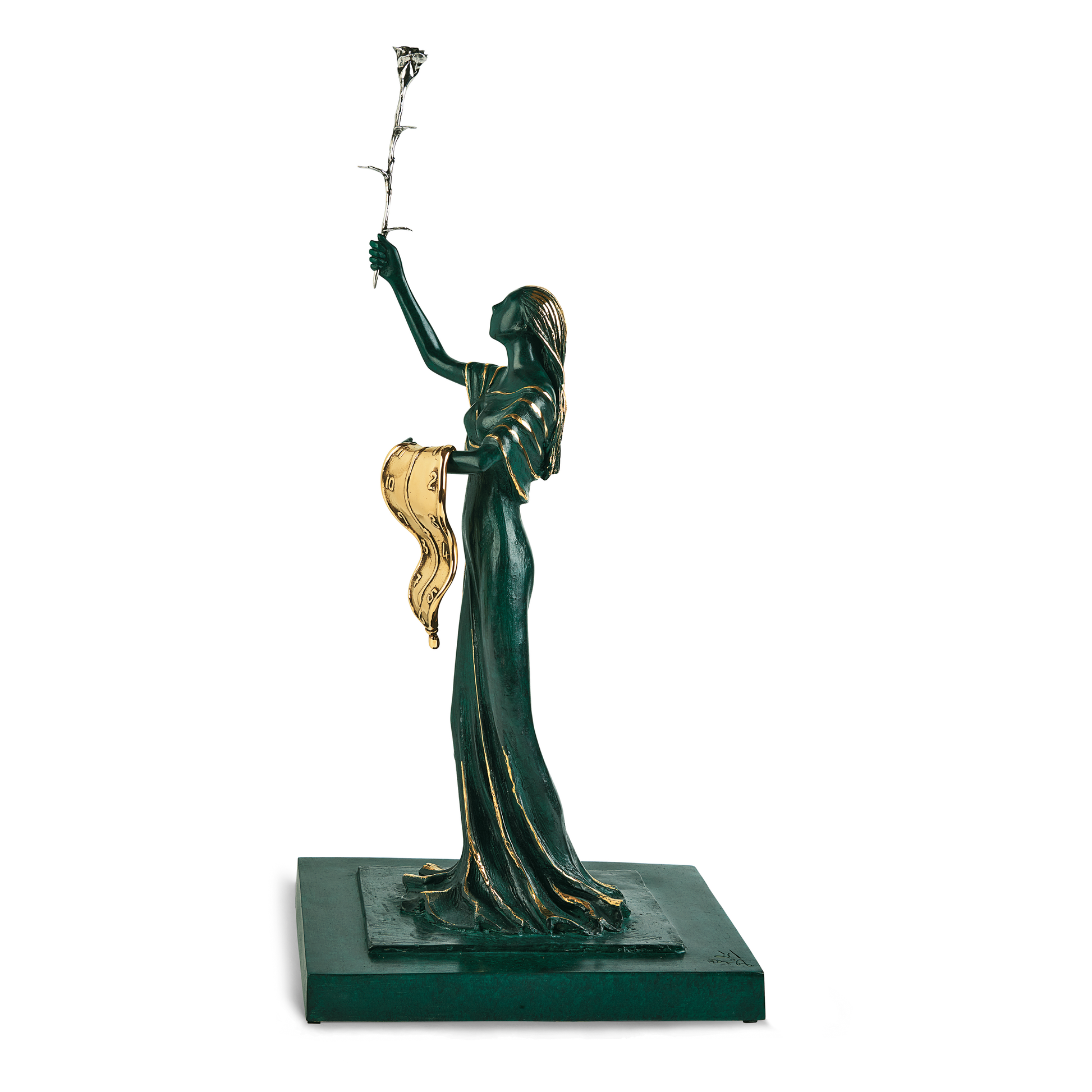 In Woman of Time verbindet Dalí das Symbol der weichen Uhr mit der Anmut einer eleganten Frauenfigur. Über ihrem Arm liegt die Uhr als Sinnbild der Vergänglichkeit, in den Händen hält sie eine Rose, Zeichen von Schönheit und Harmonie. Ihr Gewand erinnert an den Liberty Style des frühen 20. Jahrhunderts, was die Skulptur zugleich zeitlos und modern erscheinen lässt.